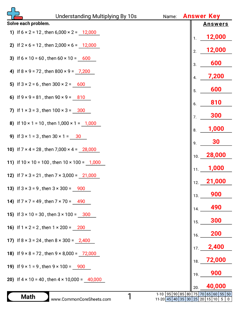 Free 5th Grade (5nbt2) math worksheets on Understanding Multiplying By 10s . Each worksheet has 20 problems with an answer key and are ideal for teachers and homeschooling. You can download the PDF, create a set of flash cards or set it up for online learning.