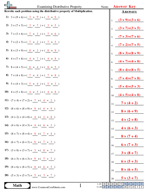 Each worksheet has 20 problems examining the distributive property of Multiplication.