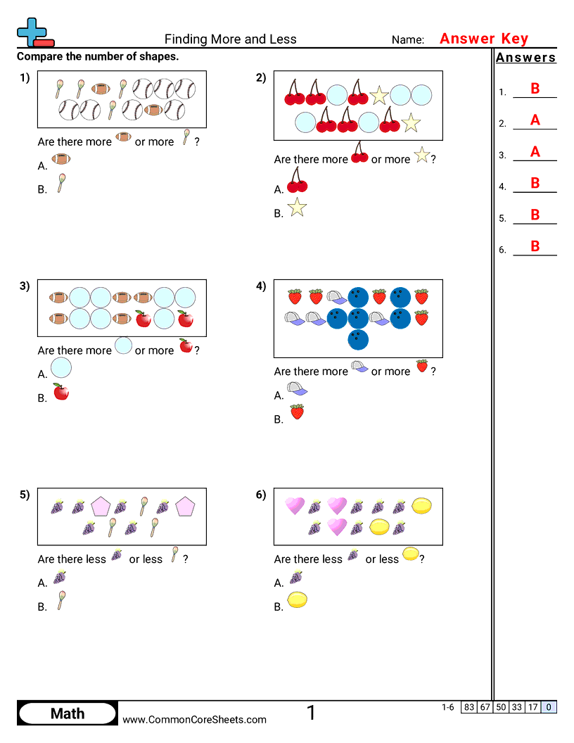 Finding More and Less Worksheet Download