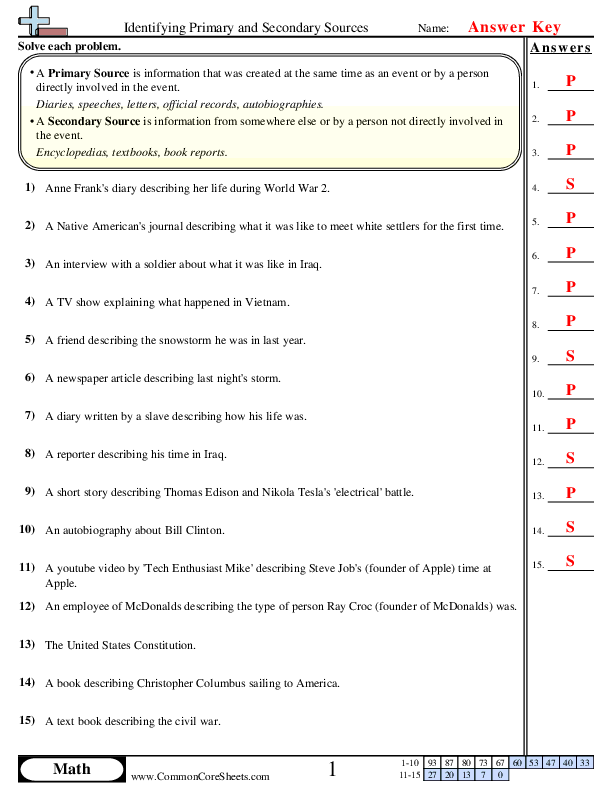 Identifying Primary and Secondary Sources Worksheet Download