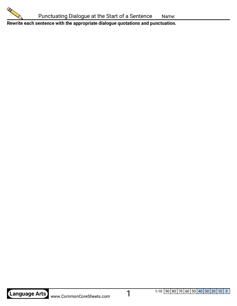Punctuating Dialogue at the Start of a Sentence Worksheet Download