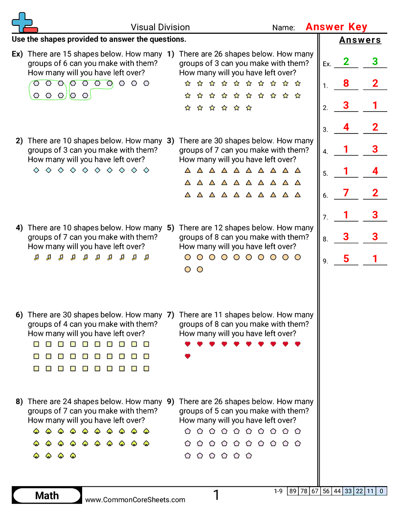 Free 4th Grade (4nbt6) math worksheets on Visual Division . Each worksheet has 9 problems with an answer key and are ideal for teachers and homeschooling. You can download the PDF, create a set of flash cards or set it up for online learning.